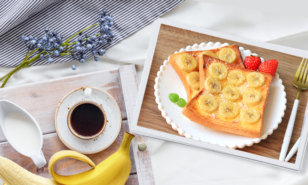 “香蕉和吐司是绝配!香蕉富含多种维生素与矿物质,当早餐吃,可给予你满满的活力!”