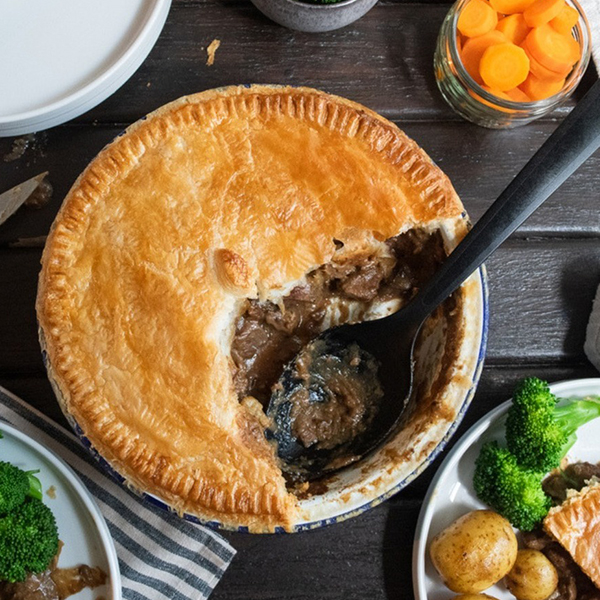 在英国大大小小的派对上不难发现这道经典美食!Steak and kidney pie 顾名思义就是以牛肉、牛腰子、炸洋葱和肉汁包裹在一块馅饼里,属于家喻户晓的英式菜肴之一!